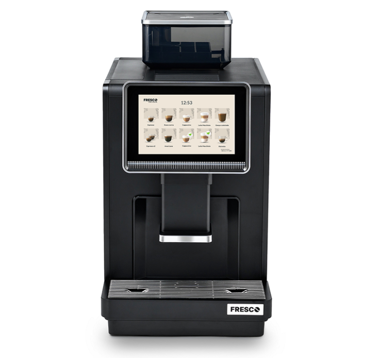 Fresco X45 to kompaktowy ekspres o nowoczesnym, minimalistycznym wyglądzie, który łatwo dopasujesz do każdego wnętrza. Urządzenie przygotuje do 30 kaw dziennie, więc świetnie sprawdzi się w mniejszych biurach, firmach oraz punktach gastronomicznych, takich jak restauracje czy hotele.